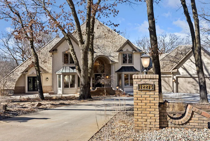 Welcome to "Chelsea Woods" an enclave of custom-built homes on the northern edge of Rosemount, just south of Lebanon Hills Park. This stately home sits on a 2.6 acre lot, with a combination of expansive lawn area and a wooded nature setting. Step inside to find a grand 2-story foyer with a dramatic staircase. Truly a perfect home for entertaining or everyday living. The spacious main level family room a raised hearth wood-burning fireplace, a wet bar, and a full wall of windows overlooking the woods! The kitchen has an adjacent vaulted sunroom, perfect for everyday dining or relaxing. Sliding doors lead to a huge private rear deck! Rare for a 2-story, the home has a main level owner's suite. This south facing room is flooded with sun all day long! Features include a gas fplc, large walk-in shower, and double doors to a front patio. The upper level has 3 BR's, and 2+ baths. The lower level is open flowing, yet with separate spaces for billiards, movie watching, game area or kids play area. A south facing walk-out leads to a private paver patio and expansive lawn space. The lower level also has a 5th BR and a "flex room", ideal for a home office or workout room. For the car enthusiast or hobbyist, the home features 2 heated garages. The main garage is finished with epoxy floor, sink and storage cabinets. Additionally, an impressive storage space and a lower 3-car heated garage/workshop space provide even more functionality.
