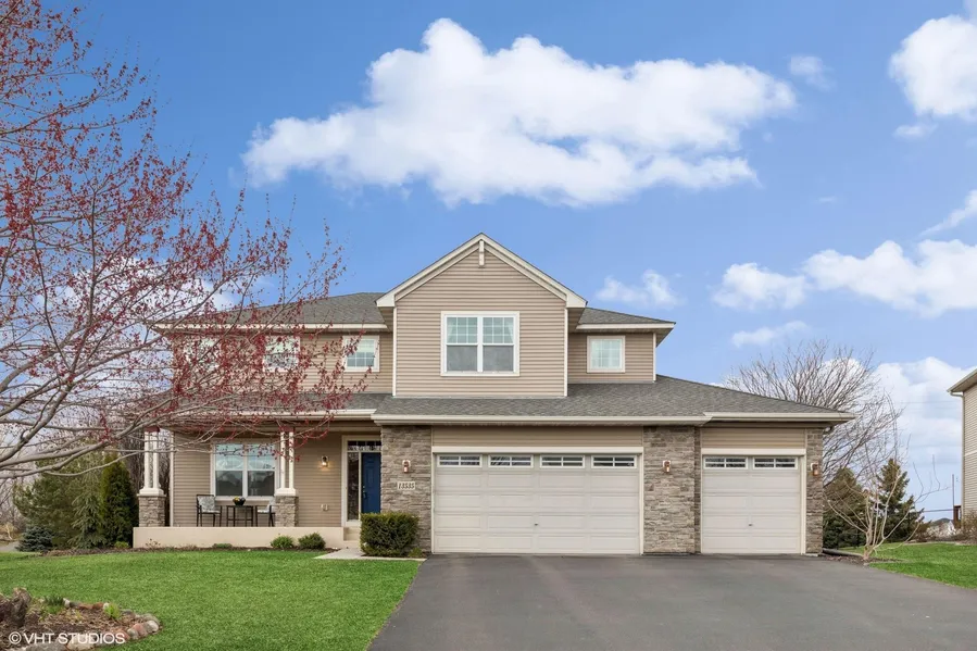 No reason to build! No wait! Incredible move-in ready two story! Two-minute drive to the new Emerald Trail Elementary school Fall 2025! Completely finished all levels with superb landscaping and private treed lot all year round! All rooms are generous in size. Meticulously maintained you'll find it in impeccable condition! Covered front porch will greet you. Hardwood floors for foyer and living room as you enter. Spacious kitchen, dining and family room open to an engaging, vaulted four season sunroom. Kitchen boasting beautiful maple cabinetry, a large granite center island and loads of counter space, enormous walk-in pantry plus stainless appliances including a double oven. Corner sink looks out to beautiful backyard. Space for a dining table as large as you want! Comfortable adjoining sitting area makes the great room so nice for everyday living and ability to entertain many! Enjoy the outdoors from the sun-drenched, vaulted sunroom and walk out to raised patio design that wraps around house to garage. Conveniently located powder room, mud room and laundry complete the main level. Wonderful, open layout for the upper level. Grand in size, the vaulted primary bedroom offers treetop views and a huge walk-in closet (11x10) with window! Private full bath has double sink raised vanity, deep soaking tub and separate step-in shower. Along with three other bedrooms and a full hall bath enter double doors to large (21'8x13'5) office or fifth bedroom! Terrific space for so many uses - study area, game room, library, music room, guest space! Moving on down to lower level you'll be pleased to find a casual/comfortable recreation room, game area, vibrantly designed 3/4 bathroom and large exercise room. Sellers leaving the Bodycraft Strength Training System and Horizon Fitness 7.8 AT Treadmill. Extra room plumbed for a wet bar/speakeasy. Endless storage space all levels and garage. The garage is amazing-full three car plus a bump out on 3rd stall. Sheetrocked, finished, and insulated. Attached shelving all around. ISD 196 and new the schools a real plus! Minutes to shopping, coffee, dining, parks and trails. Truly a home you'll be proud to call your own!