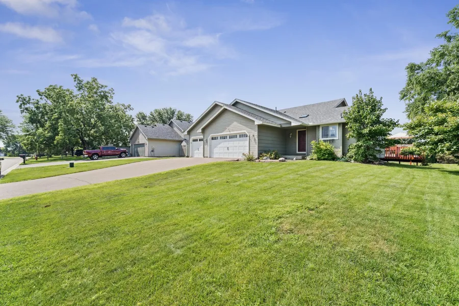 Charming three bedroom single family home with modern upgrades, lower level walk out to patio. Welcome to this well maintained three bedroom, two bathroom home featuring a spacious heated and insulated three car garage, a beautiful deck - perfect for outdoor living. Built in 1991, this home offers modern comfort with recent upgrades including new hardwood floors, new roof and new washer. The open layout provides a warm and inviting atmosphere, ideal for families or entertaining guests. Don't miss the opportunity to own this. Move in ready!