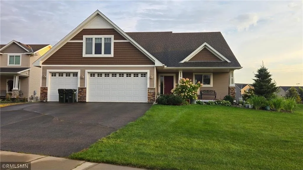 With a 3.375% rate assumable loan, step into luxury living with this custom-built 5-bedroom, 4-bathroom home in Farmington, MN. From the breathtaking views to the professionally landscaped corner lot, every detail of this home exudes elegance. The gourmet kitchen with custom cabinets and upgraded appliances will delight any chef, while the lavish owner's suite offers a spa-like retreat. The finished lower level with 13' tall ceilings provides ample space for relaxation and entertainment. With 3 bedrooms on one level, washer/dryer on the main level, and a golf course view from the front porch, this home truly stands out from the competition. Come experience a life of leisure and luxury in this stunning property.