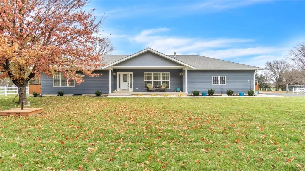 This is the ONE! This remarkable 3 bedroom home offers a perfect blend of country living and modern comfort with easy access to town. The home boasts a welcoming ambiance with its completely remodeled, open concept living room, dining room, kitchen, skylights, and vaulted ceiling. The kitchen features new cabinets, stainless steel appliances, granite counter tops, peninsula bar, and large corner pantry. The main floor hosts all 3 bedrooms, full bathroom with extended vanity, and primary bedroom en-suite with gorgeous new tile shower and new vanity. Also on the main floor, you'll find a conveniently located drop zone and laundry room with half bath off of the attached 2 stall garage. Full basement is clean and ready to be finished with a full concrete safe room. Outside, a new expansive back deck offers a perfect spot to entertain guests amidst the beauty of nature. While the 5 acres are fenced, the back yard is also fenced for pets or children. This property includes an array of outbuildings; starting with a 1 stall garage with an extended camper/semi truck port and separate septic, barn with animal stalls and tack room, 19x18 shed with concrete floor, 3 stall garage (2 ,240sqft) with new heated/air conditioned 'finished area' and half bathroom, and loafing shed. This home is newly painted with lots of new concrete sidewalks, extra parking areas, and dog kennel.