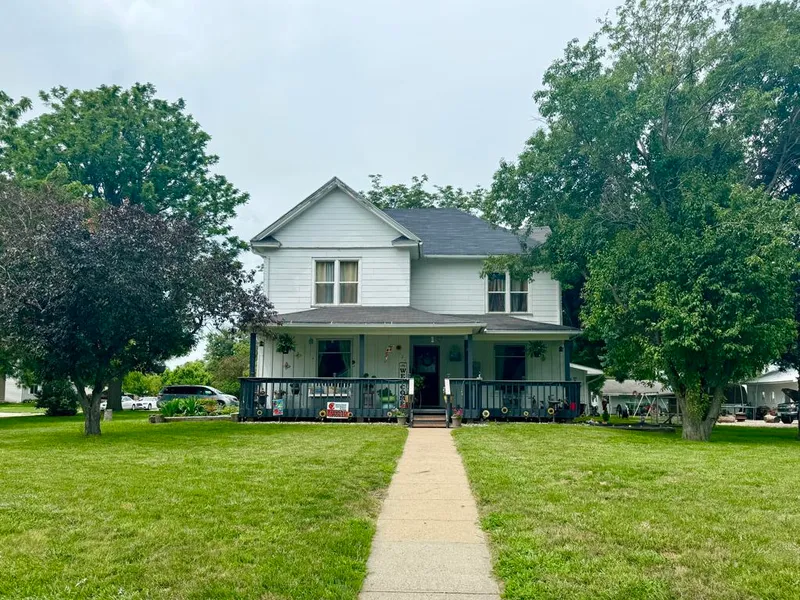 Clean, spacious, and well maintained. This 2-story home sits on a corner lot just under half an acre in Dakota City. With 5 bedrooms and 1.5 baths there is plenty of space to accommodate. On the main floor you have a formal living room and dining room with hardwood floors and a large carpeted sunken family room complete with a wood burning fireplace. The eat-in kitchen has a walk-in pantry and laundry room along with an additional walk-in coat closet for extra storage. The bathroom on the main floor is connecting a bedroom and the kitchen/family room. Heading upstairs you will find 4 bedrooms, one in each corner, and some with walk-in closets. The upstairs half bath is conveniently located near the bedrooms. The large upstairs foyer creates an open space as well. Outdoors the home has a front porch, back patio, and paver fire pit area all surrounded by landscaping and large trees. A 2 car garage with additional gravel parking sits out back. And for those who need even more space for storage or hobbies, there is an oversized 36x28ft building with 13ft ceilings and a loft area. This unique in-town property is a rare find! Listing agent is related to the seller.