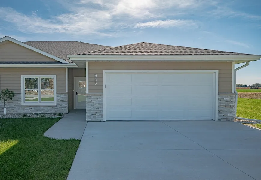 New Construction!! BEAUTIFUL half~duplex that sits on a spacious 0.57~acre lot and is located just on the outskirts of South Sioux City!! This half~duplex features Luxury Vinyl Plank flooring throughout (except in the mechanical room), and all of the flooring is heated. The kitchen has a large island for cooking and seating space, stainless steel LG appliances, Quartz countertops, custom cabinets, tile backsplash, a walk~in pantry, and is open to the dining room and living room. The dining room has a covered outlet that could hang a light fixture, if desired. There are sliding doors to the 15 x 15 concrete patio from the dining room. The living room has an electric fireplace, trayed ceiling, and a large picture window. This open concept design offers plenty of natural light and spaciousness, making it ideal for entertaining friends. The master bedroom has a master bathroom that has double sinks, a tile walk~in shower, and an 8 x 8 walk~in closet with built~in wood shelving. The master closet is also a safe room. Bonus!! There are Anderson windows throughout the half~duplex. The garage has a heated floor, a floor drain, and a utility sink. The lovely landscaping has river rock, concrete curbing, plants, and shrubs. The radon system is already installed. This 1,652 SF half~duplex has Zero Stairs!! If you`re looking for a quieter, peaceful, country living atmosphere, then this is it!! Still conveniently located close enough to the city for shopping, restaurants, schools, and more!!!!