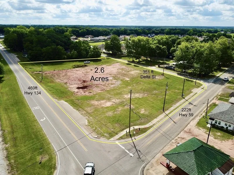 2.6 Acres Located in Midland City, AL on the corner of Hwy 134, Hwy 59 and Delta St. Currently Zoned C2 (business) could be rezoned to R1 (residential) Water , Power, Sewer, and Internet are available. 469ft on Hwy 134. 222 ft on Hwy 59, 351 ft on Delta St.
