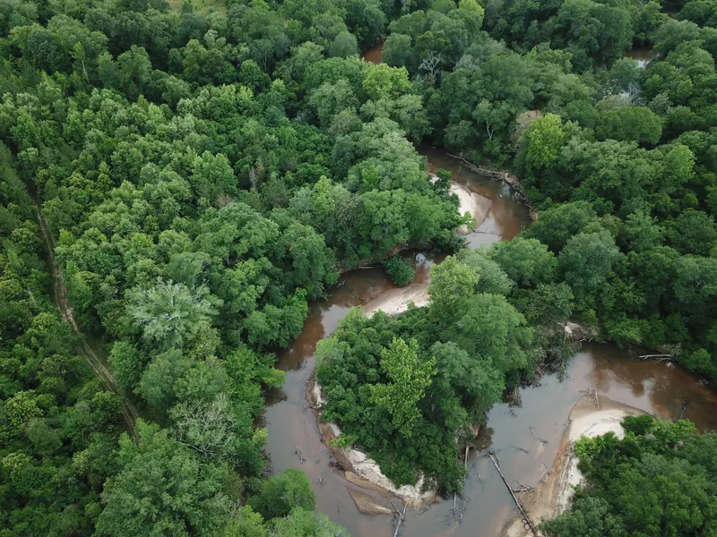 The pine plantations on this property were planted in 2007 and appear to be healthy and growing; while they are still in the pre-merchantable stage they will be due for their first thinning within the next few years. Along the SMZs by the creek and the river there are gorgeous hardwood flats that are home to many different varieties of mast producing trees, massive white oaks were not a rarity.
