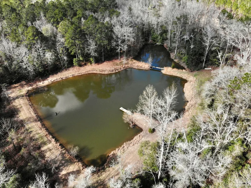 Secluded 1.5ac pond is tucked away near the center of the property. Great bass & bream in the pond!