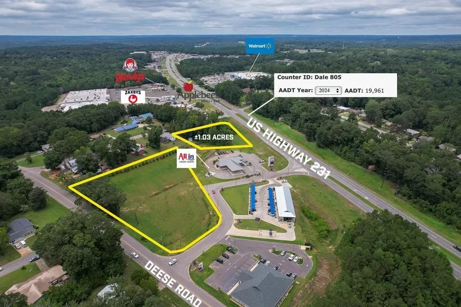 Prime corner lot in Ozark with road frontage on US Highway 231. Great visibility and close to restaurants, Wal-Mart, and more.