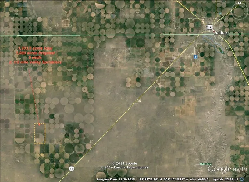 Very nice 2 section farm with 2; 1/2 mile-late model Valley Sprinklers, 5 wells. Currently growing 250 acres of corn, 250 acres of grain sorghum and 500 acres of wheat. Room for further well development on this nice sandy-loam farm.