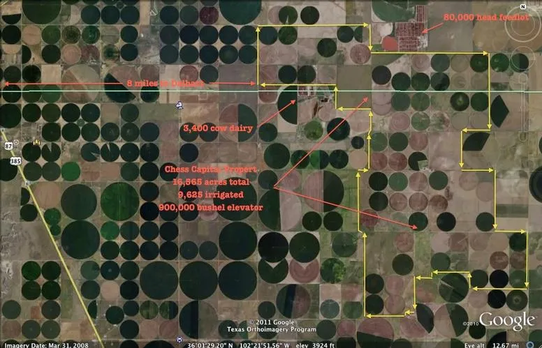What a great opportunity to have 16,565 acres contiguous and within 10 miles of Dalhart, TX. 9,625 acres irrigated, balance is a combination of dry land, CRP and native grass. 77 center pivots and 64 wells. Property has 2 homes and 3 farm sheds for equipment storage and repair. Three-phase power through out and includes a 900,000-bushel elevator. Property is priced to sell at $2,000/acre!