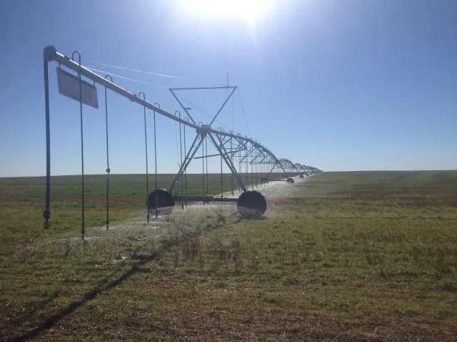 This nice irrigated farm in Dallam County is located in the center of a diverse area of agricultural production. Many improvements include two half mile Zimmatic center pivots covering a total of 1,000 +/- irrigated acres. Both pivots are nozzled for 1,300 gallons per minute, in which one is operated at a time. Wells include four natural gas turbines and six electric submersible pumps powered by three gen-sets. The generator setups are run by natural gas engines as a way to increase efficiency and were installed with additional development in mind. As the majority of the wells are being pumped up hill, a booster pump at each pivot would help to reduce friction loss and relieve head pressure in order to increase gallons per minute at the pivot.