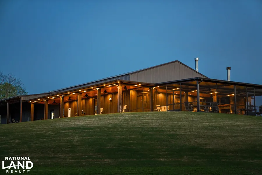 This beautiful farm is located in Marion Junction, Alabama. An area known for excellent hunting, large land owners, and beautiful sunsets. This farm has a newly finished, fully furnished barndominium that consists of 10,000 sq ft under roof. 5,000 sq ft heated and cooled. Large screened-in porch with wood-burning fireplace. 3 large fireplaces, 2 of them are wood burning, 1 is gas logs. The living area is a custom large kitchen with a large custom dining table. There was no expense spared building this. Everything is top of the line. The den flows nicely outside the kitchen with large gas logs fireplace. 2 bedrooms downstairs with full baths. 1 bedroom upstairs with full bath. The shop space is fully heated and cooled 5 electric roll up doors. Large wood-burning fireplace. Two humongous fans in ceiling, pool table, sink, cabinets, and large roll-around island. Generac standby generator. The entertaining possibilities are endless with this beautiful barndo. This property is a must-see.