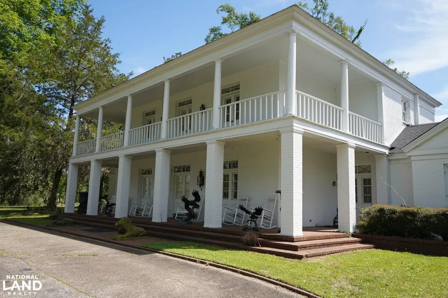 DUCKS, DUCKS, & more DUCKS! 933 +/- acres featuring a magnificent Louisiana-style brick two-story home, a 5-acre lake with a pier, gazebo, metal shop, and an additional home that provides more space for extended family. This spectacular property offers hunting, fishing, and recreation! The terrain is rolling to gently rolling containing open pasture land, hardwood, and pine timber with an interior road system. The deer population is excellent, with established green fields, and the Blue Gurth Swamp, located on the north end of the property, brings in ducks and geese. Public utilities are available and include county water and electricity. The main house was built in 1967 and has 5,184 sq. ft. of living space, including 5 BD and 5.5 BA. Other additional structures include the swimming pool and tennis courts. The second home on the property was built in 1965 and has 2,100 sq. ft. of living space, including 3 BD and 2 BA. Call today to schedule your private tour!