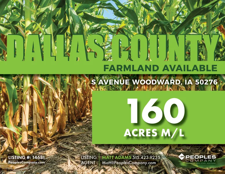 Research Parcel InformationFrom Woodward, Iowa: Travel south on IA Highway 210 for 1 mile before turning left (east) merging onto IA Highway 141. Continue on IA Highway 141 for 1.7 miles until reaching T Avenue. Turn right (south) on T Avenue for 2.5 miles until reaching 180th Street. Turn right (west) on 180th street for 1 mile until reaching S Avenue. Turn right (north) on S avenue for 1 mile and the property will be located on the left (west) side of the road. Look for Peoples Company sign.