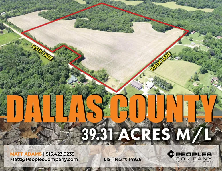 Research Parcel InformationDirections from the Des Moines Metro: Take the Iowa Highway 141 W exit (Exit 127) toward Urbandale/Grimes, continue for about 16 miles, turn right (east) onto 150th Street for 2.4 miles, turn left (north) onto R30/Bittersweet Road for 0.5 miles, and turn right (east) onto 145th Lane for 0.5 miles and the property is the north side of the road. Look for Peoples Company signs.
