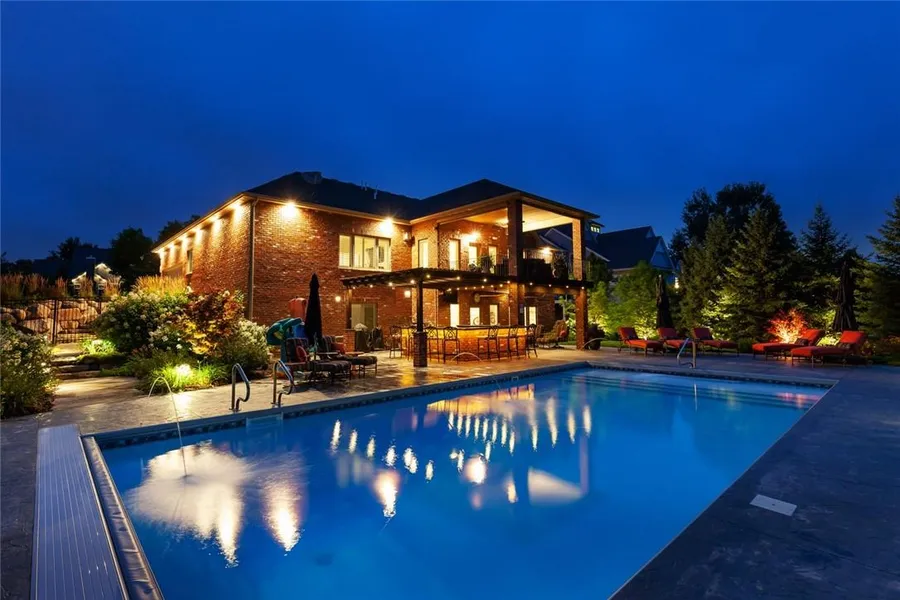 Luxury, privacy and livability. Stunning, executive walk-out ranch on a Ted Lare professionally landscaped .95 acre lot featuring a heated salt water pool, amazing outdoor kitchen, upper covered deck & a lower fire pit backing to a stream surrounded by trees! Abounding room in this well-appointed home to entertain on both the main & lower levels. The main level features a gourmet kitchen that is open to a beautiful living room with a stunning feature fireplace! It also includes an eat-in dining area, executive office space, updated LVP flooring and decor, a large mudroom and a luxurious primary suite with fireplace. The lower level continues to wow with expansive living and entertaining space that includes 2 additional bedrooms, a steam shower in the workout room, a movie theater and second full kitchen! And don't forget to explore the oversized garage with epoxy floors. Other updates in...