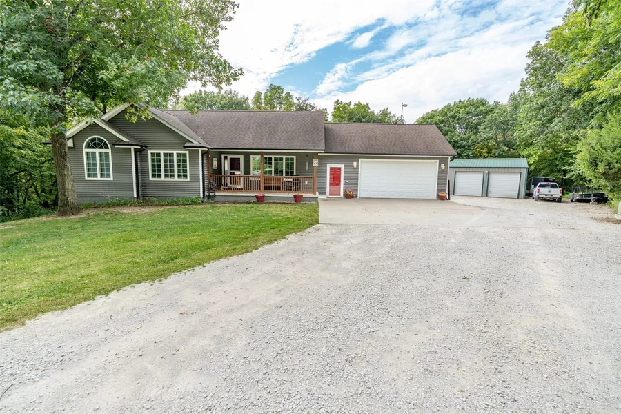 Welcome to this one-of-a-kind 2,797 total finished sq ft Walkout Ranch 4-bedroom, 3-bath home that combines comfort, functionality, and outdoor living - all nestled on over 5 + acres on a dead-end road just outside of Adel. Inside, you'll find all updated modern spacious and inviting main level with an open-concept layout and a fully finished walkout basement with a custom-built wet bar and tv area. Go outside to relax by the big fire pit or sit in new hot tub, ideal for entertaining or relaxing. Enjoy any time of year outside onto the covered deck, rain or shine, to enjoy your morning coffee or to fire up the grill. The property includes a large 30x56 outbuilding with 3 spaces for cars and toys, endless potential for storage, a workshop, or hobby space. For outdoor enthusiasts, this property is a Hunter's dream. Located just off the Racoon River access for the fishing/ kayaking enthusiast, with mowed paths, trails to an existing food plot area with stands, blinds already set, this spot is ideal for wildlife activity for Turkey, Pheasant and Big Whitetail traffic. No matter what you are looking for, this place has something for everyone. Schedule your showing today - you won't want to leave!