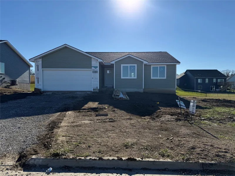 This re-designed Coolidge ranch from Greenland Homes American Dream Series now offers 1,294 square feet of thoughtfully designed living space, blending comfort, style, and modern convenience. Step inside to an open-concept floor plan where the inviting eat-in kitchen with quartz countertops, a stylish tile backsplash, stainless steel appliances, and beautifully painted cabinets flows seamlessly into the spacious great room. A sleek electric fireplace with stone/shiplap surround adds warmth and character, making it the perfect gathering space for family and friends. This home features three bedrooms and two well-appointed bathrooms, offering ample space for everyone. The first-floor laundry enhances everyday practicality, while the 2-car attached garage provides secure parking and extra storage. Step out onto the deck for a relaxing outdoor retreat, ideal for entertaining or quiet evenings at home. Designed with your lifestyle in mind, the lower level is stubbed for a future bathroom, giving you the flexibility to expand as your needs grow. Exterior stone accents complete the homes curb appeal, showcasing the signature style. Enjoy modern smart-home conveniences with app-controlled front door lock, thermostat, exterior lighting. Plus, every Greenland Homes property includes a 2-Year Builder Warranty, providing peace of mind for years to come. Ask about our special buydown program for FHA and Conventional Loans and USDA 100%