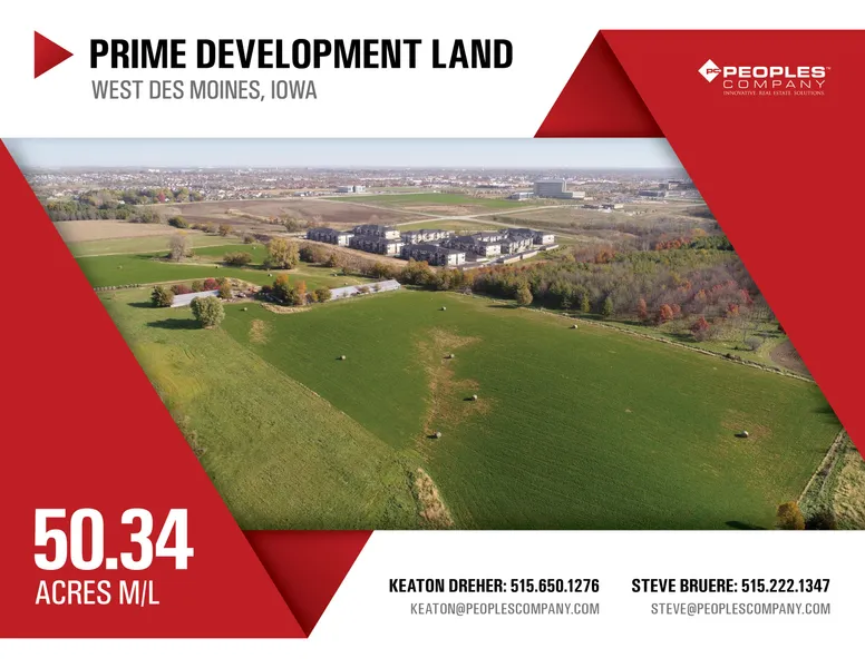 Offering 50.34 acres m/l of prime multi-family development land in West Des Moines, Iowa. Located in the rapidly expanding area of West Des Moines, southwest of Jordan Creek Mall along S 88th St, the site is shovel-ready with all utility infrastructure available. Currently, the property is not zoned, but is slated for high density residential uses according to the City of West Des Moines and could accommodate 16 to 18 units per acre. Site can be serviced by an existing 8 inch sanitary sewer that is stubbed into the northwest corner of the property at Cascade Ave. There is also an existing 16 inch water main along S. 88th St. Exhibits and development concepts can be found in the Attachments Section which demonstrate how road infrastructure through and around the property will develop. Excellent location just minutes from Jordan Creek Mall and easy access to Interstates 80 via the new Gran...