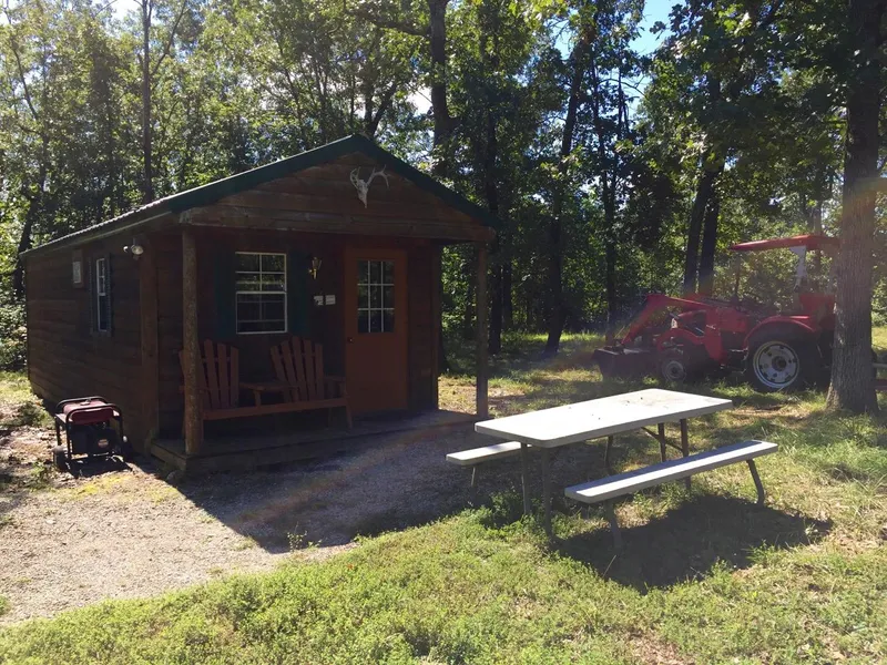 This 120 acre hunting farm in Dallas County, MO offers an extensive trail system that measures approximately 4 miles and is home to numerous deer, turkey, and small game. The timber consists of mixed hardwoods including Oaks, Hickory, and Walnut. A nice little cabin sleeps five and boasts a kitchenette and bathroom. Water is delivered thru a holding tank and electricity is provided by a portable generator which remains with the property.