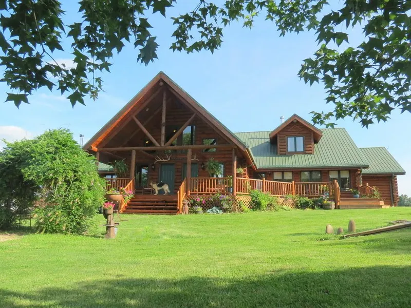 Magnificent 75 acre horse property tucked away in the beautiful Ozarks of SW Missouri with access to I-44 and services in Springfield and Lebanon. You will find that this meticulous owner takes great pride in care of animals and facilities. For the horse lovers, there is a large Indoor Arena with stalls as well as a large Outdoor Arena. The riding Barn is approx 90 x 135 with 22 Stalls including 4 Foaling Stalls, Apartment, Office, Tack Room, Wash Rack & Feed Room. In addition to the Outdoor Arena, there is also a Haybarn, numerous Paddocks with excellent piped fencing, 7 Sheds with 4 automatic waterers and a Trainer's Cabin providing full living quarters. The Main House is a stunning custom-designed log home of approx. 4350 sq.ft. The Living Room welcomes you with a massive stone floor-to-ceiling, wood-burning fireplace enhanced by logs, posts, beams & Australian Cypress hardwood floori...