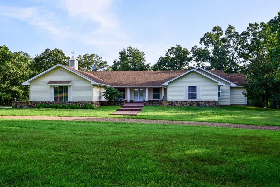 This spacious home located in northern Dallas County was build in 1996 with quality in mind and has been meticulously maintained by its original owner. Five bedrooms combine with 4 full baths and a finished basement to allow plenty of space for extended family living. A full sized fireplace upstairs with complete venting system heats the upstairs. A wood burning stove downstairs combines with 2 heat pumps to provide energy efficient heat in the winter. Two different attached garages ensure plenty of climate controlled storage for all your vehicles and equipment. The acreage is a mix of pasture grass and mature timber with quality perimeter fencing in place making it ready for your livestock of choice. The current owner has had as many as 25 cow / calf pairs at one time. The timber has hickory, scattered walnut, and amazing oaks too big to get your arms around. Quality deer and turkey ...