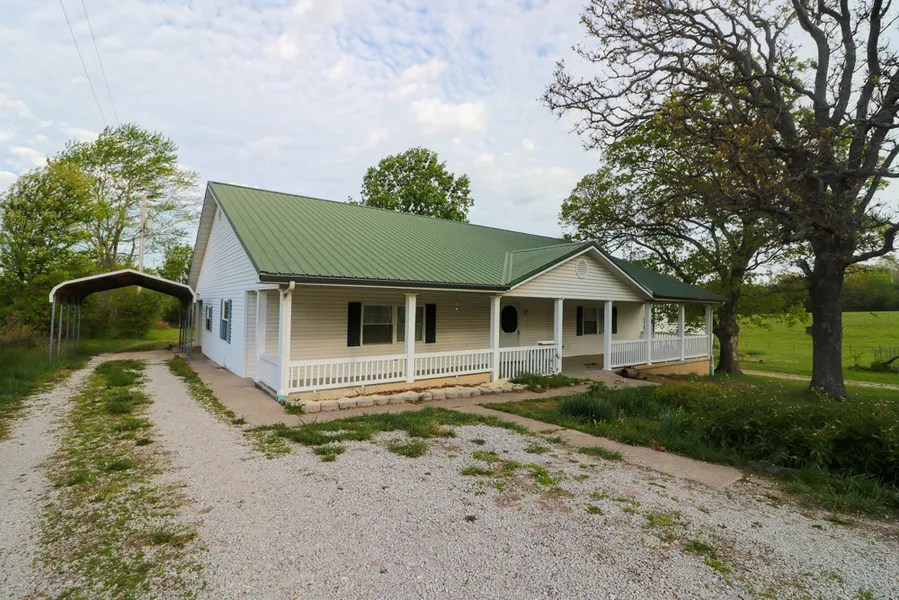 Inside the main residence, you'll find a spacious 3 bedroom, 2 bathroom layout with an enclosed porch, providing additional living space to enjoy year-round. The enclosed porch has a pass-through window to the kitchen making entertaining guests a breeze. The large master bedroom has two walk-in closets, offering plenty of storage space or a home office. The heart of the home is the country kitchen, complete with a wall of pantry cabinets. Note the new metal roof on the home and all outbuildings! Outside, a fenced pasture awaits, perfect for livestock or simply enjoying the great outdoors.