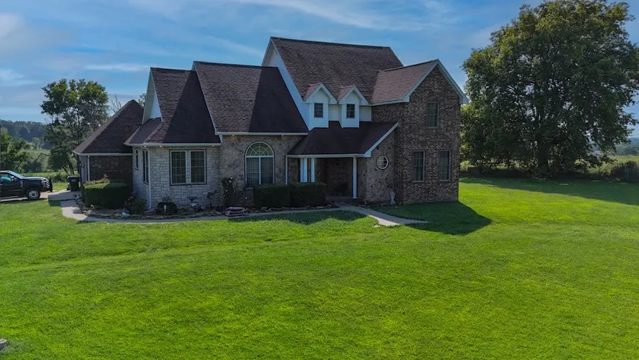 Discover this beautiful 4,600 sq foot home on 8 +/- acres in the countryside of Dallas County featuring vast views, great curb appeal, and a great location. Past the pipe entrance towards the back of the fenced acreage, you will enter a turn-key custom-built brick home with 5 bedrooms, two living spaces, two kitchens, four full bathrooms, and a two-car attached garage. The heart of the house is the main level living room with a gas fireplace, porch, and tall ceilings that open to the kitchen and dining room making a great area for entertainment and cozy evenings inside. If you are accommodating guests, there is ample space downstairs with a separate kitchen, dining room, living area, washroom, and large nonconforming bedroom (no window) with a handicap-accessible full bathroom. The downstairs living area has a separate entrance with parking that gives it the potential for rental income. The primary bedroom on the main level has a bathtub, shower, large walk-in closet, and porch. When you step outside you are greeted with incredible views of the surrounding farm ground and the peaceful quietness of the country living this house offers. Bring your pets and livestock because there is plenty of room and the boundary is fenced. Located off Blacktop Road frontage you are in an ideal location to Lebanon, Buffalo, and I-44 for all your in-town needs. Do not hesitate to call The Utecht Land Team with any questions and to schedule a private showing.