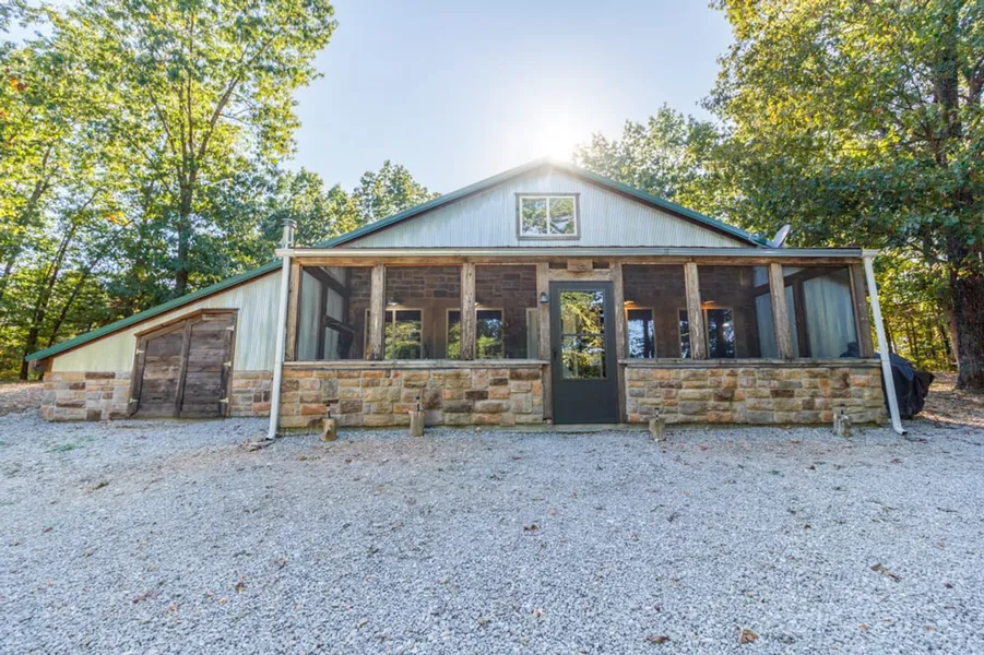 This opportunity doesn't come often! A stunning cabin that lies in the middle of approximately 74.88 scenic acres near Bennett Spring State Park. This cabin sits on an Ozark bluff and has a breath taking view. The property has been used as a highly sought after vacation rental for 15 years and the income that has been produced for this unit is unbelievable! The finished rustic lodge can sleep numerous guest and features 2 bedrooms, 1 bath in open floor plan layout. The bedrooms each have king beds. The loft area consist of two 2 twin beds and 2 full size beds as well. There are two high quality rollaway beds that make this location a pleasant experience for multiple families. The large grand room has a stunning wood burning fireplace and give it that cozy lodge feel. You will also notice the large screened in front porch that allows you to experience nature but keeps the bugs away as wel...