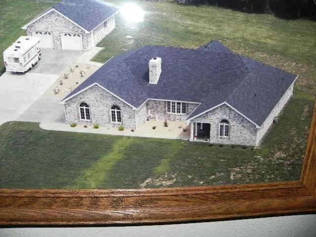 Very beautiful all brick home on acreage just outside of town. Large open floor plan with fireplace. Large sunroom. Walk in closets build in cabinets. Large detached oversized garage/workshop