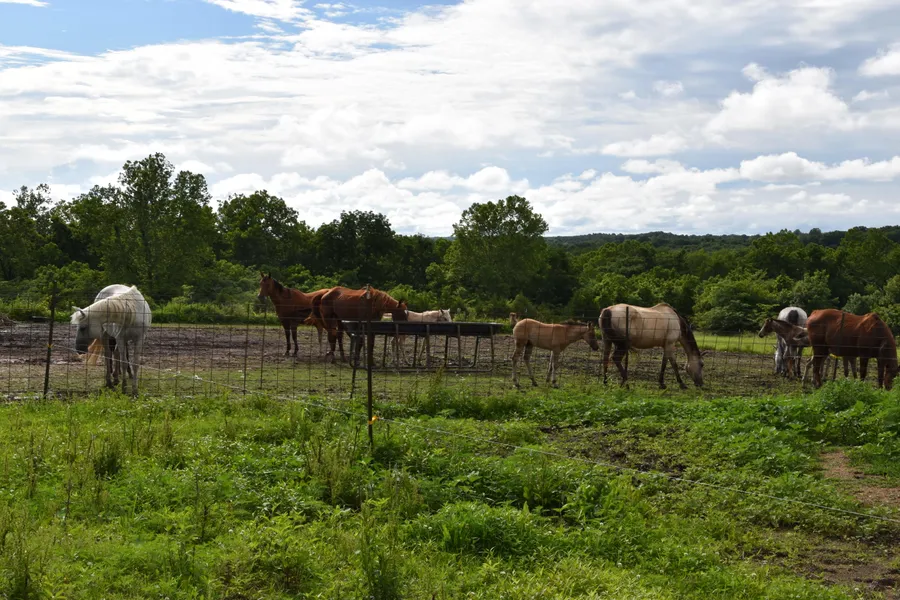 This horse farm has a little bit of everything, with a 20x30 hay shed that has electricity. A pond with fish. A large 40x80 barn with a couple of horse stalls, a tack room and plenty of air flow with 3 overhead doors. There is also an attached 50x50 covered riding arena. including a round pen next to it. 3 bed 2 bath doublewide with a large deck that has a family room and a living room. There is a place for a hot walker all set up. Mostly pasture with no restrictions
