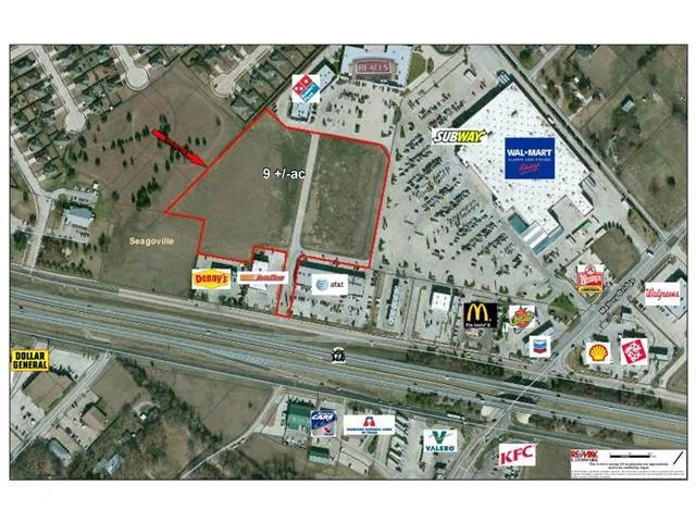 Excellent 8.96 acre commercial tract in Seagoville, positioned next to Wal-Mart. Zoned retail, located in prime retail center. Priced to sell quickly.