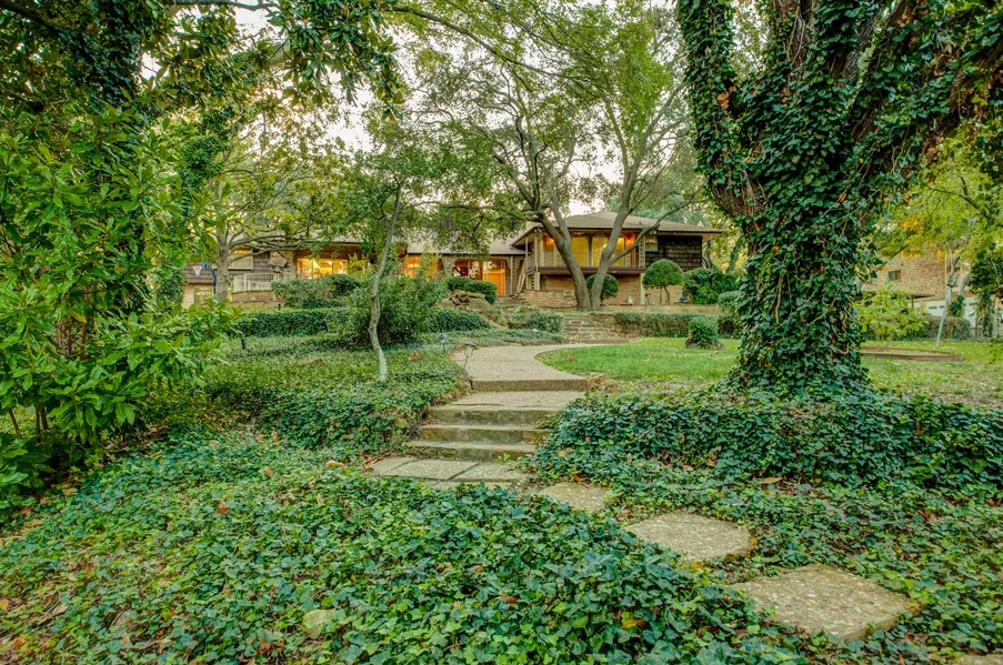 Recent reduction!!! This incredible estate is one of Garland's finest & many a huge party was held in this home.Breathtaking views as you enter out to the park like setting in back. Small lake with fountain & dock..Huge deck across back plus private deck up off master suite. Home constructed in the architectural style of Frank Loyd Wright with major remodeling done over the past years so beautiful updates!. The home is set on approx. 2.2 acres including approx. one half acre of lake. The lake is primarily on the subject property except for a portion of the NW side. Lake has been cleaned of all "rough fish" & restocked with small mouthed bass, channel catfish & perch. The area has a fishing dock & small boat dock. Various footpaths & benches similar to having a private park. Flooring in the large foyer is marble and pecan wood plus beautiful hardwoods throughout much the main living space including kitchen and breakfast room. The recessed sliding door to close off the living room from foyer was left in its original condition for sentimental reasons. Both fireplaces have been converted to propane gas logs; can be reconverted to wood burning. Wet bar with ice maker plus wine storage. Kitchen features granite counter tops & updated appliances including huge built-in refrigerator-freezer and giant double door pantry that loads from the rear through add'l set of double doors. The family room has area designed for a large screen television. Play room below has walls of built-ins. & once housed a day school for in home schooling + has access to the back yard. Bedroom suite up on kit. side features a small kitchenette, 2 walk-in closets & great bath. 2nd Game room below on garage side has add'l room for work shop.. There is an approx. 700 sq.ft. finished out walk through attic with loads of storage. Enter on the kitchen side of home & exit on the bedroom side of home. So many amenities to this home. You have to come see to appreciate!! You could own a piece of Garland's history!