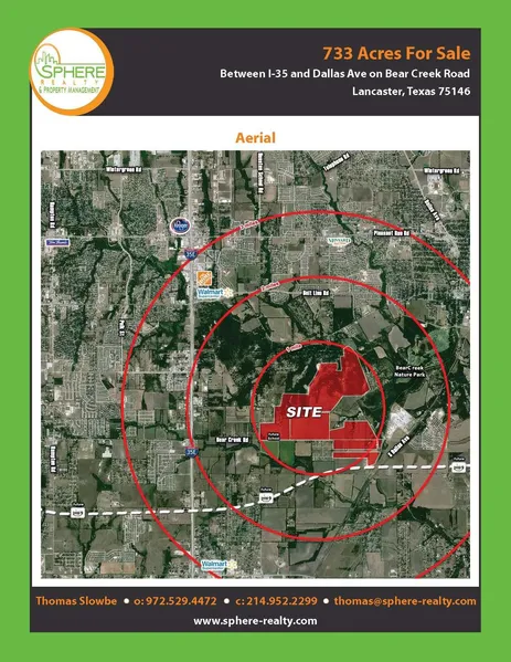 732 acres available on Bear Creek Rd. between I-35 and Dallas Ave in Lancaster,Texas. Excellent mix for open, treed, and creek residential lot development. Frontage on Houston School, Bear Creek ,Blue Grove,Truman Drive and10 Mile Road.