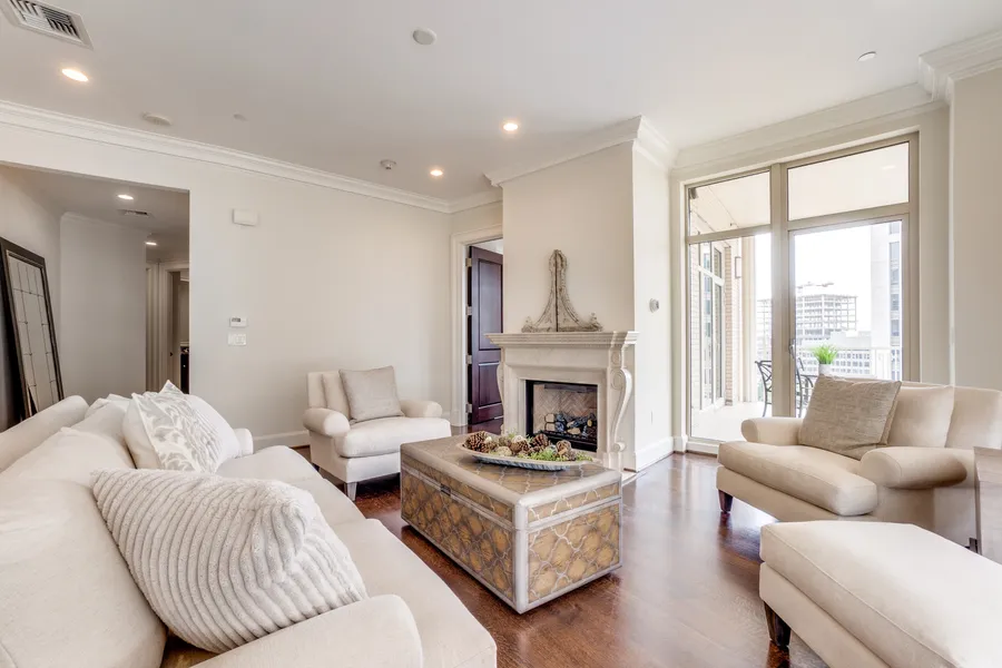 This one-bedroom home is a luxurious jewel box perched on the tenth floor of the glamourous Ritz-Carlton Tower Residences. Every inch of the 1,375-square-foot-home has been meticulously designed with comfort and sophistication in mind. In addition to the original grandeur of the space, updates have been made throughoutsuch as in the kitchen, utility room, and primary bathroomto make this the chicest spot at the Ritz. In the light-filled living area, a sizable family room looks out to breathtaking views of Uptown, and an elegant fireplace makes for a stunning focal point. The open-concept floorplan flows to the dining room, as well as the remodeled kitchen. Find a new Cove dishwasher, a Sub-Zero fridge, Wolf oven and gas stove, newly-installed Taj Mahal quartzite countertops, two wine refrigerators, and designer travertine flooring. The cabinets and countertops have been reimagined and up...