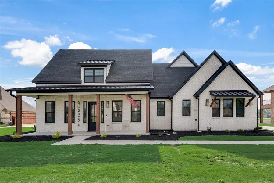 Beautiful home on one acre designed for multigenerational family living! Huge front porch greets your guests as they enter this immaculate, ready to move in home. Home has 2 private in law suites, both have Handicapped accessible features. Each suite has full kitchen with electric range, Quartz counters, and space for a refrigerator plus Stackable washer-dryer hookups. Spacious kitchen with gas cooktop, high end appliances, Quartz countertops, beautiful island. Open and airy living area with hardwood floors, vaulted ceilings, built ins, and electric fireplace. Split bedroom floor plan. Relaxing primary bedroom features, oversized walking shower, separate vanities, tub and custom walk in closet. Game room and 1 bedroom located upstairs along with a full bathroom. Lots of energy saving features including Spray Foam insulation, high efficiency HVAC, 2 tankless water heaters and more. Community with easy access to golf course, Soccer fields, schools, Shopping, DFW airport and Love Field.