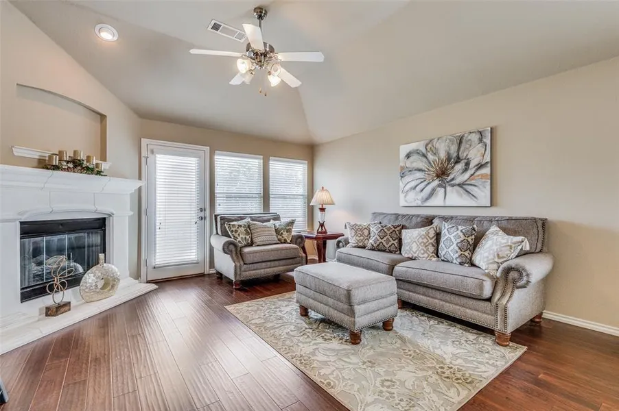 WELCOME HOME! This beautiful one owner, well maintained home is MOVE IN READY. Open concept offering great environment for entertaining family and friends. Cozy living room equipped with fireplace. Kitchen has cabinets galore, gas stove and refrigerator included. Primary suite with plenty of natural light, garden tub, separate shower and walk-in closest. Both secondary bedrooms have walk-in closets. Community pool is perfect refuge from the Texas Summer Heat. Great location close to Highway access and shopping!