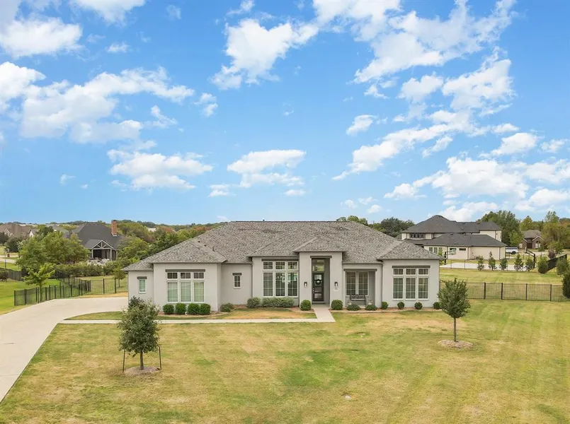 Find your own personal haven in this exquisite custom home nestled on a 1-acre cul-de-sac lot. NW facing backyard offers breathtaking sunsets, while a diving pool, spa, and outdoor living area beckon relaxation. Inside, a seamless flow connects the chef-inspired kitchen, breakfast area, formal dining and spacious family room, all crowned by a beamed cathedral ceiling and awash in natural light. The kitchen boasts quartz countertops, a 5-burner gas cooktop, double ovens, and ceiling-high cabinets. A private home office, versatile game room with built-ins, mudroom, spacious laundry room, rich hardwoods and a 3-car garage elevate the allure. Each bedroom emerges as a private oasis, complete with ensuite baths and generous walk-in closets. The master suite promises tranquility with captivating views, a spa-like bath with a freestanding tub and quartz vanities. Located in the amenity-rich, co...