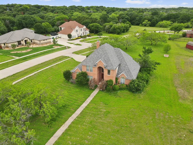Situated in the tranquil, 3400 acre Lake Ridge Community and ideally located just south of the Dallas/Fort Worth Metroplex, 321 Wilshire Ct. exudes warmth and sophistication. The one acre corner lot welcomes you, hinting at the beauty that lies within. As you step inside, you're greeted by an inviting atmosphere characterized by abundant natural light, soaring ceilings and spacious living areas. From cozy family dinners to festive gatherings with friends, this space sets the stage for memorable moments.