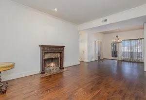 This exquisite condominium situated within a secure gated community in a North Dallas premier location boast a significant price reduction. The interiors beautiful hardwood floors create a warm atmosphere complemented by the open living area and fireplace. The dining room seamlessly connects to the covered patio. The expansive master bedroom features a a cozy sitting area suitable for a home office or workout space while the updated master bath and custom walk in closet showcase refined elegance. The second bedroom offers a built in bookshelf and ensuite bath with walk in shower and crystal chandelier. The kitchen provides ample counter space and cabinetry with a dedicated nook for a small table. Recent updates include the addition of a new dishwasher and microwave and the HVAC system's replacement. The condo is equipped with surround sound wiring and the seller will convey the equipment. Within walking distance to nearby shops and restaurants.