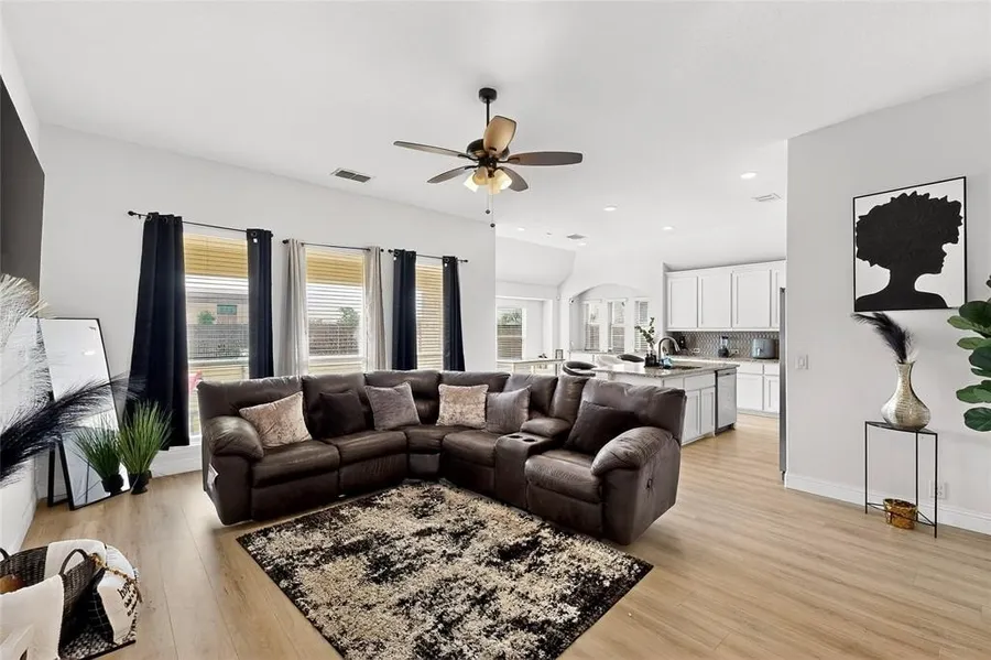 Spacious 5-Bedroom Beauty with Game Room & Dream Kitchen!! Welcome to this well-maintained two-story home offering 5 bedrooms, 3 full baths, and plenty of living space designed for comfort and style. Step inside the grand foyer that flows into a formal living room, family room, and dining space—perfect for entertaining. The chef’s kitchen is a true highlight with its large island, granite countertops, stainless steel appliances, walk-in pantry, and abundance of cabinets. A cozy breakfast nook completes this inviting space. The first floor features the private primary suite with a walk-in shower cubicle, walk-in closet, and serene retreat, plus three secondary bedrooms and a full bath. Upstairs, enjoy a spacious game room, study desk nook, and an additional bedroom with full bath—ideal for guests or a growing family. Every bedroom is outfitted with ceiling fans, while decorative lighting ...