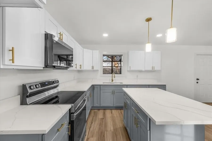Welcome to this beautifully renovated home that blends modern upgrades with inviting charm. As you arrive, you’ll be greeted by a long paved driveway offering ample parking, in addition to a convenient two-car garage. Step inside to discover a unique and welcoming layout. Just beyond the front door, a large picture window fills the space with natural light, an ideal spot to create a cozy window nook. The heart of the home is the stunning kitchen, featuring brand-new cabinetry, elegant quartz countertops, and plenty of space for gathering and entertaining. This home offers three generously sized bedrooms, including a spacious primary suite with a modern ensuite bathroom. Out back, enjoy a private, fenced backyard with no back neighbors, perfect for relaxing or hosting guests. Additional upgrades include a new HVAC system, new flooring, updated bathrooms, new cabinets, and fresh paint thro...