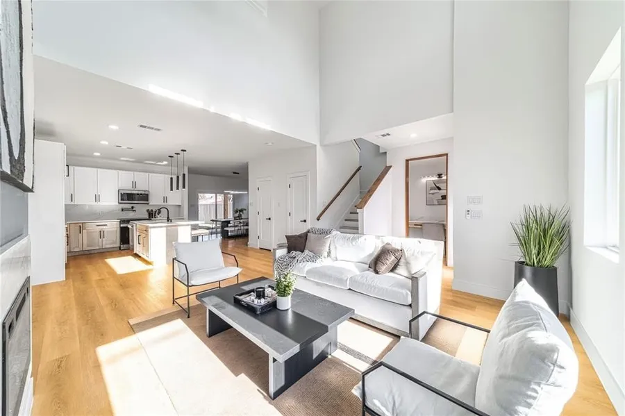 Modern new construction on a corner lot with striking architecture and high-end finishes throughout. Soaring 20 foot ceilings create an impressive open feel, complemented by mahogany wood stair rail accents and matching door trim that add warmth and character. The open-concept kitchen features an oversized island, custom cabinetry, and a pot filler, flowing seamlessly into the living and dining areas ideal for entertaining. The primary suite offers a spa-inspired bathroom with a European-style wet room showcasing a freestanding soaking tub inside an oversized walk-in shower. Bonus or secret room provides flexible space for an office, gym, or creative use. Automatic gated entry, private backyard, and sleek modern exterior complete this thoughtfully designed home just minutes from downtown Dallas