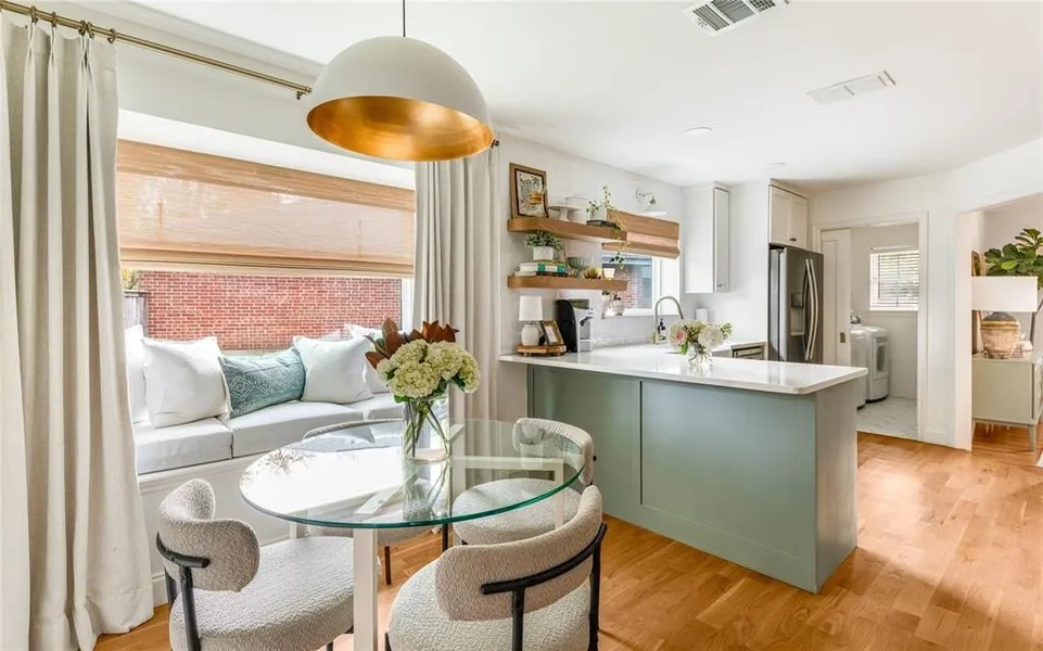 The kitchen and interiors have been upgraded with timeless design choices, blending functionality with character. Large windows flood every room with natural light, highlighting the home’s beautiful flow and peaceful views of the creek and yard.