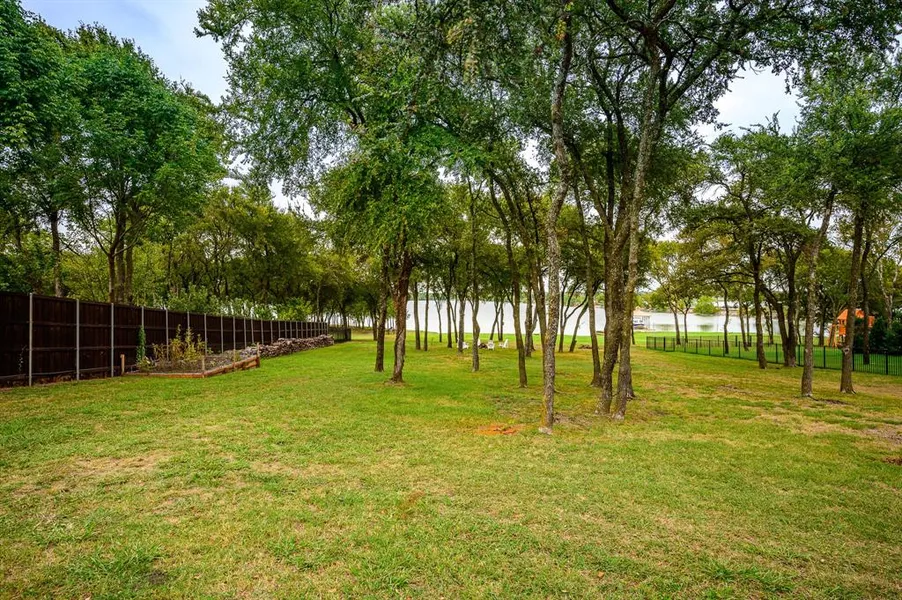 Beautiful 0.4775 acre lot on Lake Ray Hubbard. A gentle slope of 23 ft from back to lake edge; all grass covered. 50+ trees trimmed high for great lake views. Enjoy the sun rise whether on back porch of newly built home or at waters edge. City of Dallas contracts through City of Rowlett with owner to obtain a lease of the Lake Ray Hubbard take line area, which requires 1 small yearly payment to keep the lease. Subdivision also has a community dock for fishing and entering or exiting the water. This is a great place to build your dream home. Edges are marked on both sides with twin red lines.