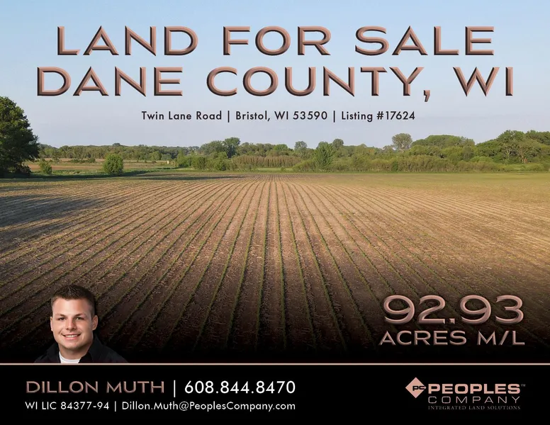 Peoples Company proudly presents 92.93 acres m/l of prime farmland in northern Dane County, WI. This exceptional property features 81.49 FSA cropland acres with an NCCPI rating of 63, and its primary soil types are Vigil, Dodge, and Wacousta silt loam. Located in a region celebrated for its outstanding agricultural conditions and future growth potential, this farmland offers convenient access to Madison, WI, and Columbus, WI, just 1 mile south of U.S. Highway 151.