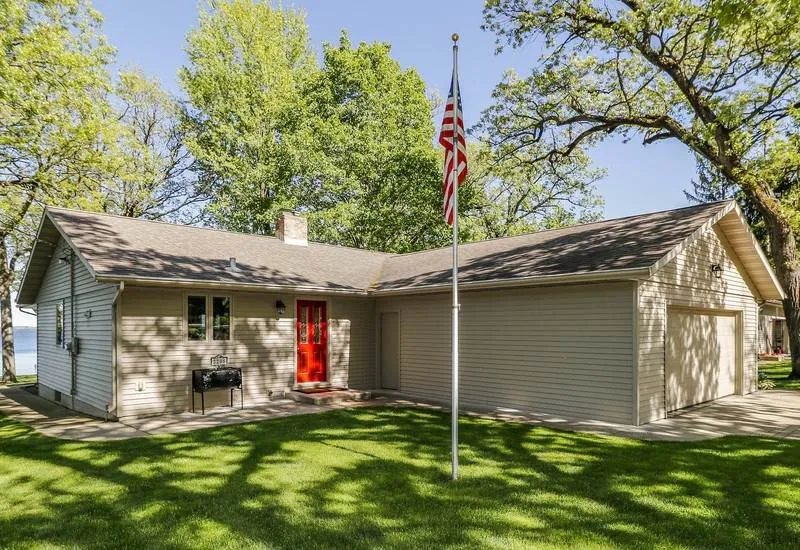 72 ft of level waterfront with sandy beach in park like setting. Home has 2bed. with potential for 3rd in lower level. Living/Dining have fantastic views of the lake and fireplace for winter coziness. Kitchen totally remodeled and is bright and cheerful. 2 car attached garage with ample storage space. Lower level has family room with plenty of storage. Patio with hot tub to sit and view sunsets. Pier to anchor your boat at and swim off. Must see to really appreciate. Is potential to purchase extra waterfront with guest house or expansion.