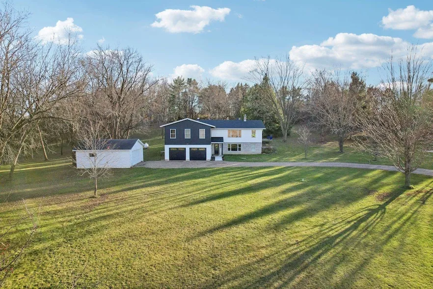 This one has it all! This picturesque 8 acre property just south of Verona features a spacious home w/ extensive remodeling, a 88 X 48 outbuilding & salt water pool. This updated home boasts a large great room w/vaulted ceiling & skylights. Kitchen w/hardwood floors, SS appliances, lots of counter space & open to dining area w/ beverage station. Primary suite w/ two walk in closets & beautiful en suite bath w/ tile shower. Two addtl bedrooms & updated main bath. Main level laundry. Lower level provides extra living space w/ rec room, family room, office/den & flex rooms. Outbuilding w/office, rec room, kitchenette, full bath and plenty of unfinished space for storage or hobbies. It s time to move to the country and enjoy more outdoor time.