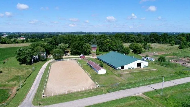 Amazing 29 acres only 10 minutes East of Madison. Mix of crop ground, hard woods and pasture. Commercially built Horse Barn Indoor Riding Arena 66x160, stall barn is 36x160, fully insulated with in-floor heat, 12x16 foaling stalls, 21 stalls, hot and cold water, wash & shower stall, tack, feed, laundry & bathroom, 100x300 Outdoor Arena. Nice 2 Story Home and Room to Build Your Dream Home! One split available. Crop income $200 per acre per year. Property is going through the rezoning steps.