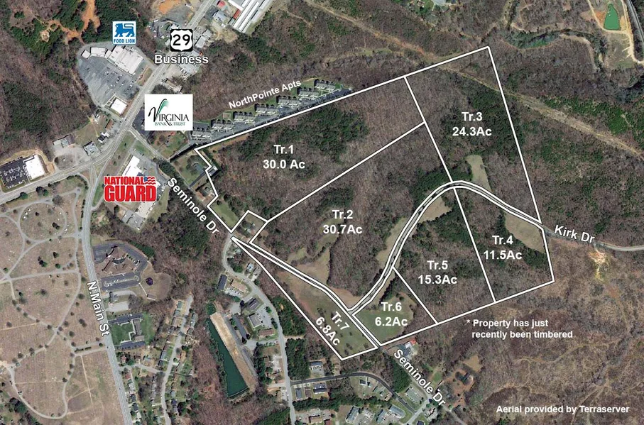 Tract 1: 30.0 acres adjoining NorthPointe Apartments with 325' of frontage on Seminole Dr. Road frontage is in Danville but the majority of the acreage is in Pittsylvania County