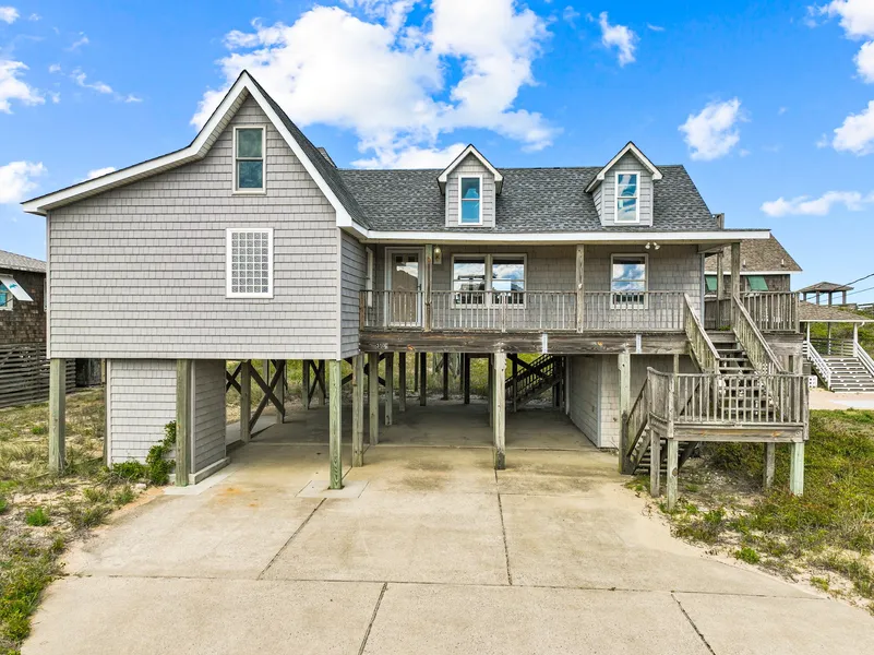 Nags Head Oceanfront Cottage! Elevator! Ocean Views! Private dune walk and oceanfront gazebo! 75 foot wide oceanfront lot with a large and vegetated dune! Located across the street from Tortuga's, this is one of the best and most sought after locations in Nags Head. This quintessential oceanfront cottage has 4 bedrooms and 4 bathrooms, a comfortable living area, elevator, bonus room, large covered porches, sun decks, private dune walk with oceanfront gazebo, ample parking under the home and more. It's everything you need at the beach and gives you a feeling of the way it used to be on the Outer Banks. The covered decks and porches are perfect for enjoying that morning cup of coffee watching the sun rise or relaxing in warm summer breezes with your favorite book! The main level of the home has 4 bedrooms, 3 full bathrooms, kitchen, dining area, laundry room, elevator access and opens up t...